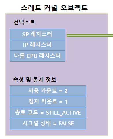 시간이 지나 해당 스레드가 CPU를 할당 받으면 스레드 커널 오브젝트에서 CPU 레지스터 정보를 로드하여 이전에