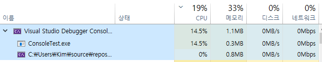 위 그림은 루프에서 Sleep(0)이 수행중인 필자의 컴퓨터의 CPU 상태 및 프로세스 상태 창인데